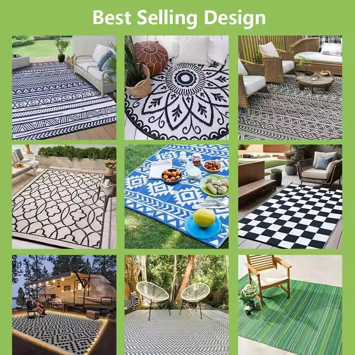 High Quality Outdoor Mat Polypropylene Water-resistant Washable Reversible Outdoor Carpet Rug Picnic Outdoor Woven Carpet